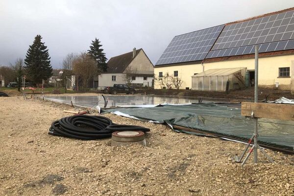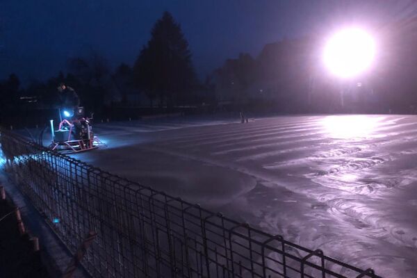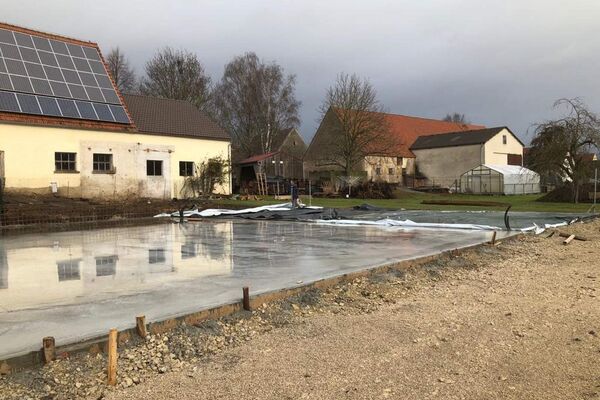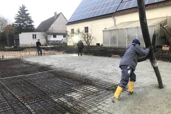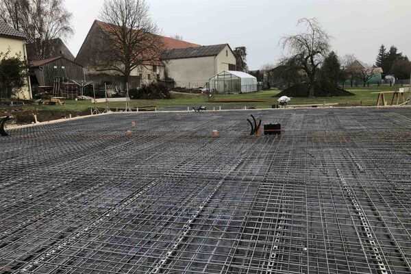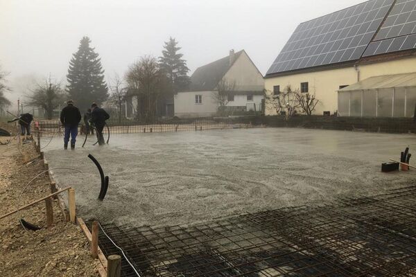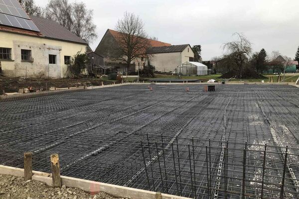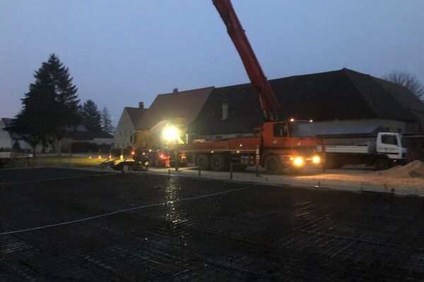 Kurz vor Weihnachten konnte die Bodenplatte für das zukünftige Büro- und Hallengebäude noch fertig gestellt werden.